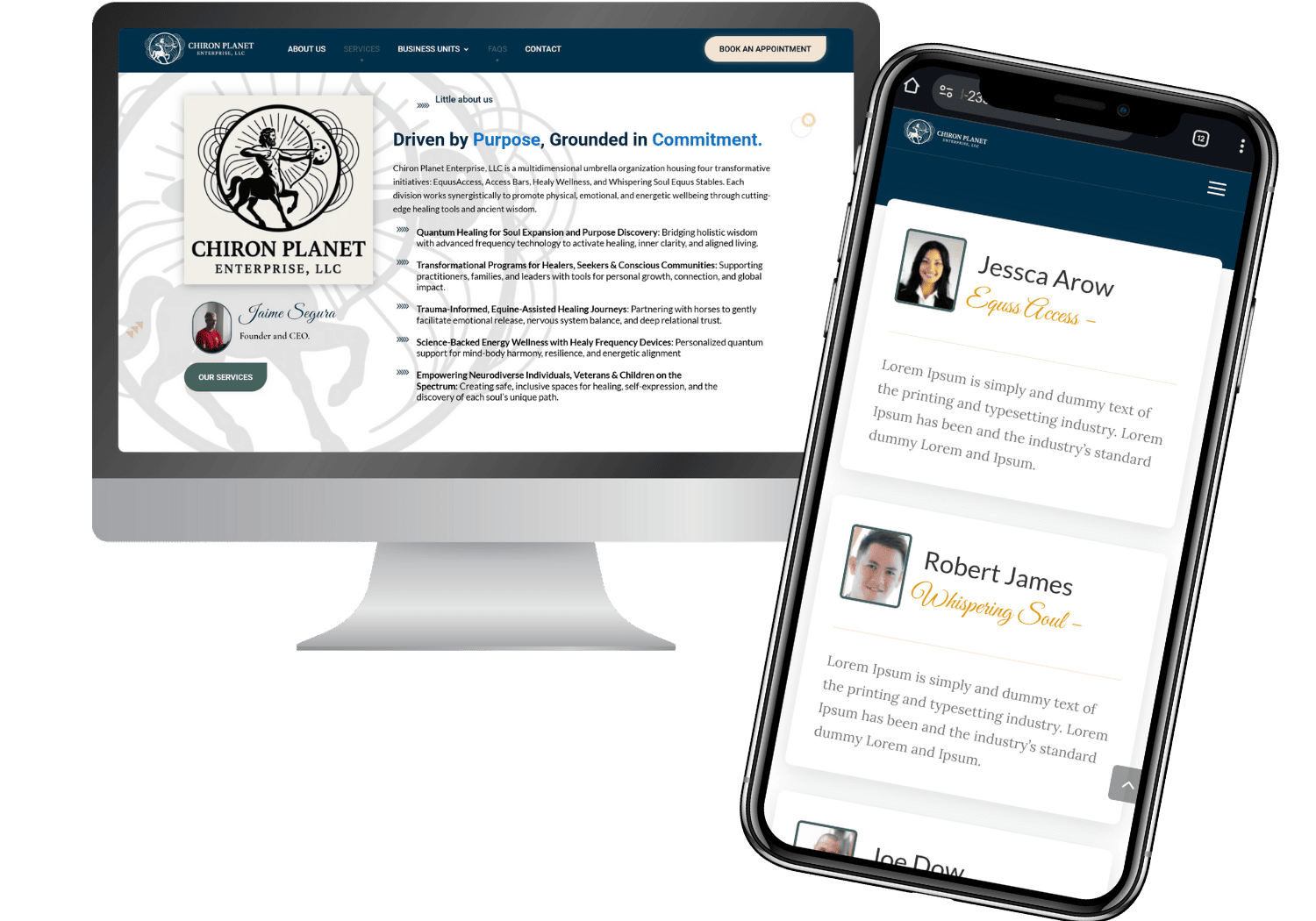 Adaptable para todos los dispositivos y también dinamico con efectos y transiciones para reflejar profesionalidad y modernidad en la marca.