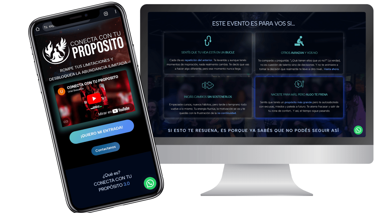 Panding page para evento creada con diseño moderno y responsive adaptado a la estética y manual de marca de la empresa, con integración a Whatsapp y a redes sociales.