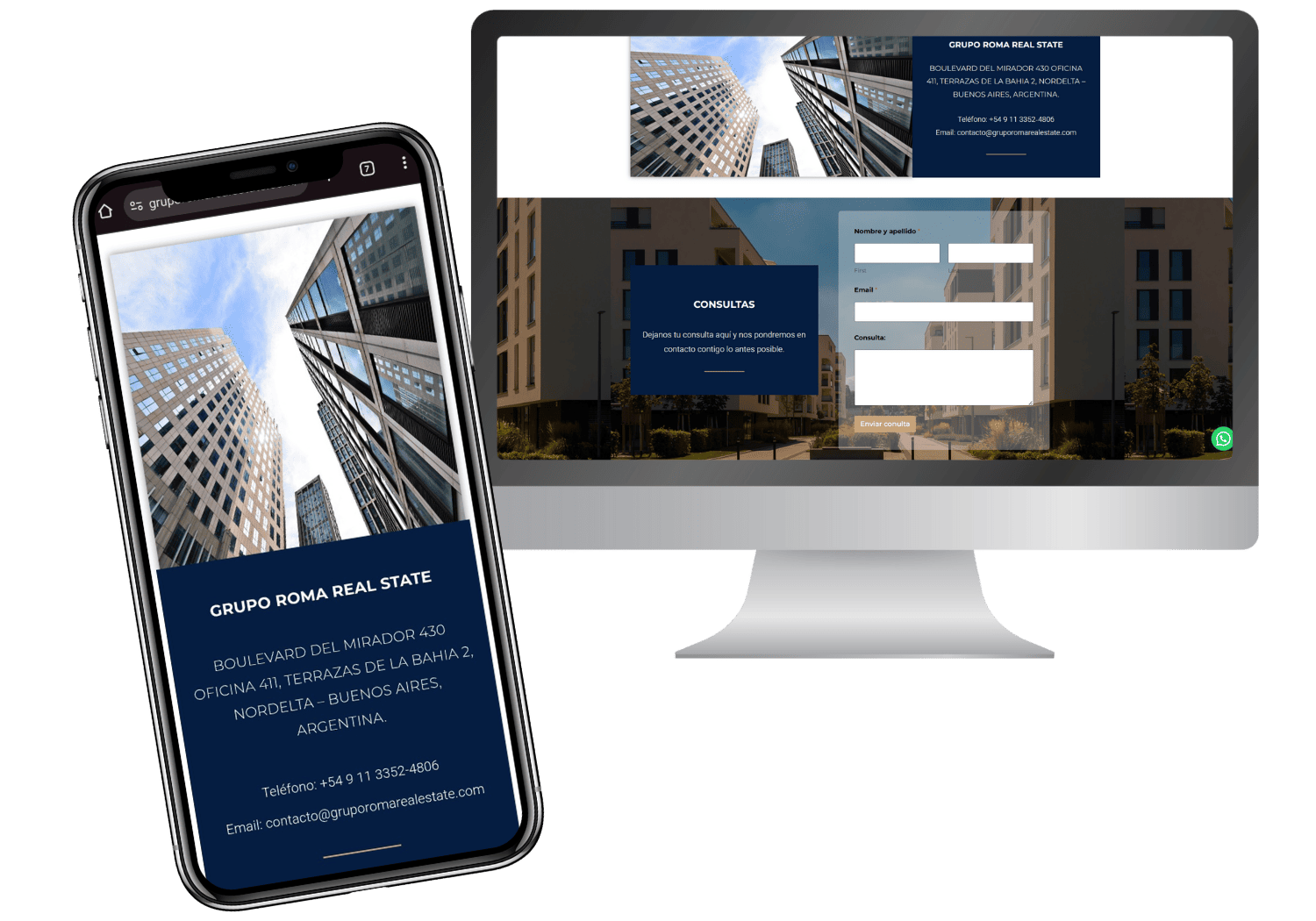 Cuenta con un diseño moderno y responsive con integración a redes sociales y Whatsapp a demás de Tokko. Tambien 2 mail corporativos entregado junto con la web terminada y referencias a entidades publicas donde figura la empresa.