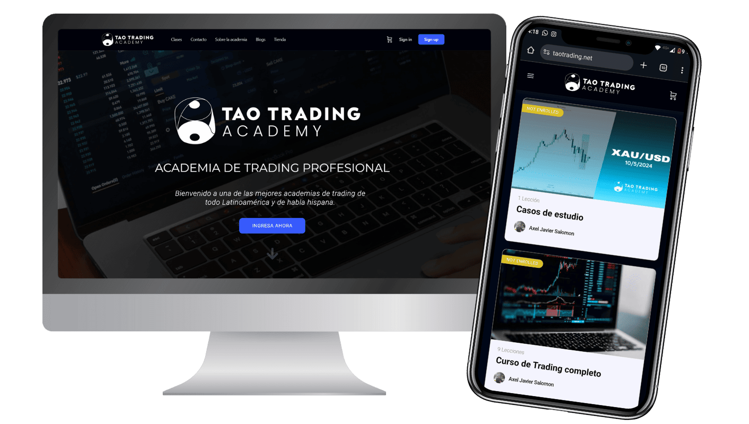 * Home: Hero + CTA + Presentación de los cursos + Descripción completa + Testimonios + Preguntas frecuentes + CTA final.